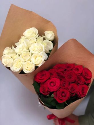Состав: роза красная - 15 шт., упаковка -1 шт., лента - 1 шт.