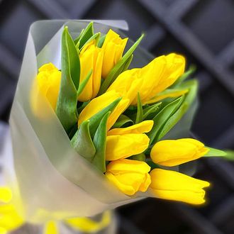 Состав: тюльпан желтый - 11 шт, упаковка, лента