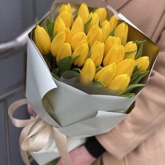 Состав: тюльпан желтый - 25 шт, упаковка, лента