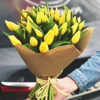 Состав: тюльпан желтый - 31 шт, упаковка, лента
