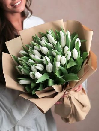 Состав: тюльпан белый - 51 шт, упаковка, лента