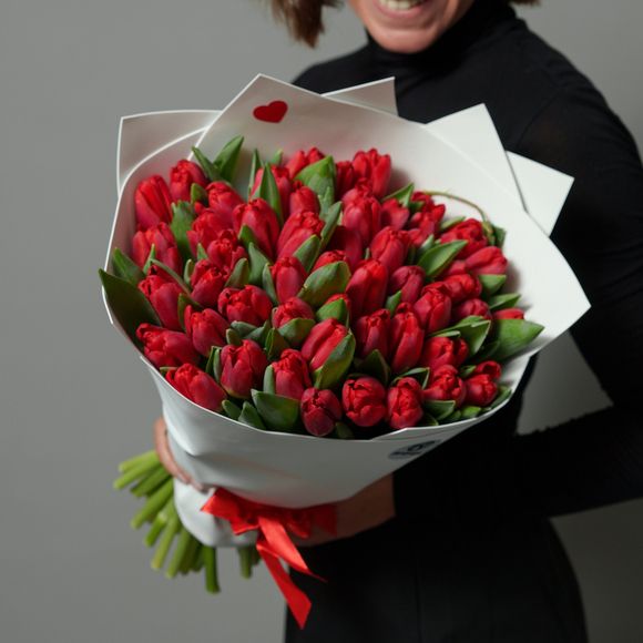 Состав: тюльпан красный - 51 шт, упаковка, лента