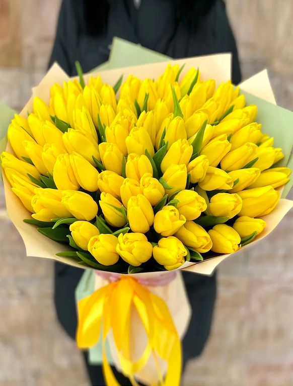 Состав: тюльпан желтый - 101 шт, упаковка, лента