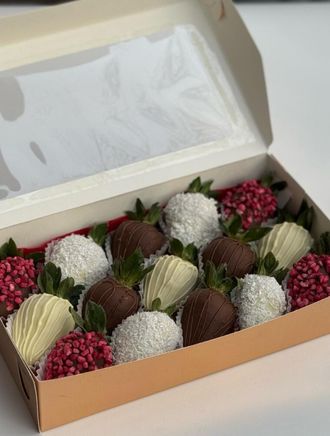 Наш хит продаж - набор свежайшей ароматной клубники в бельгийском шоколаде и стильном крафтовом оформлении. Нежный молочный шоколад, покрывающий свежую клубнику, создаёт неповторимый дуэт, который нравится и детям, и взрослым. А благодаря изысканным акцентам в виде посыпки и белого шоколада это лакомство становится настоящим произведением кондитерского искусства.